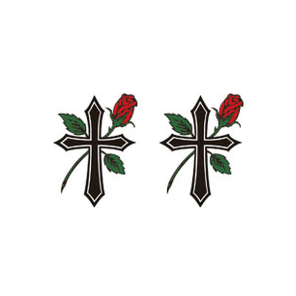 お洒落のワンポイントに!ミニサイズのペーパータトゥーシール「ローズ&クロス」。