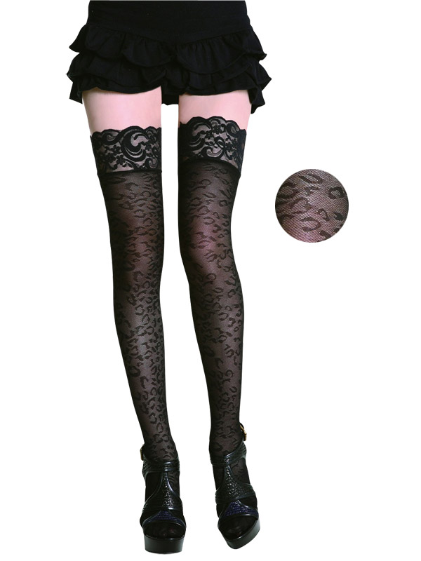 デザインにこだわった、レオパード×刺繍レースのガーターストッキング。