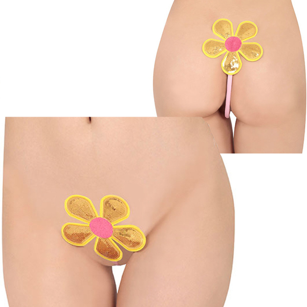 極細のI型ストリングが食い込むようにフィット!キラキラと輝く大きなお花デザインがファンシーでインパクト大なセクシーストリングです。