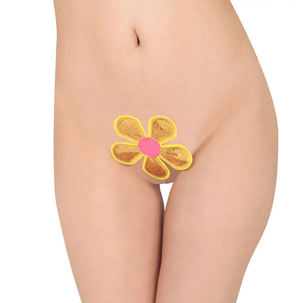 一瞬で装着できる♪黄色×ピンクの大きなお花が大事な部分に咲き誇る8mm幅のI型ストリング。