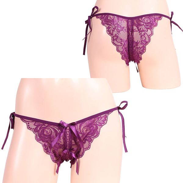 HOME > オープン ブラ・ショーツ(穴あき) > 女らしさ満開サイドリボンオープンショーツ パープル