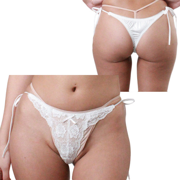 HOME > ショーツ > 光沢生地にレース付き脇ヒモTバック Lサイズ ホワイト